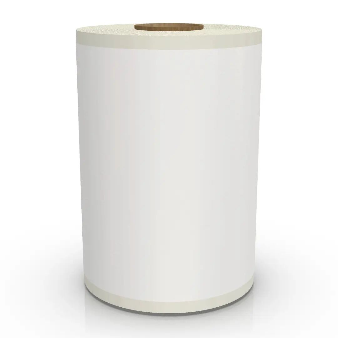 Rolo de etiquetas brancas, disponível em tamanhos padrão ou personalizados, ideal para automação comercial e processos industriais. Material adesivo resistente, pronto para impressoras térmicas e de transferência.